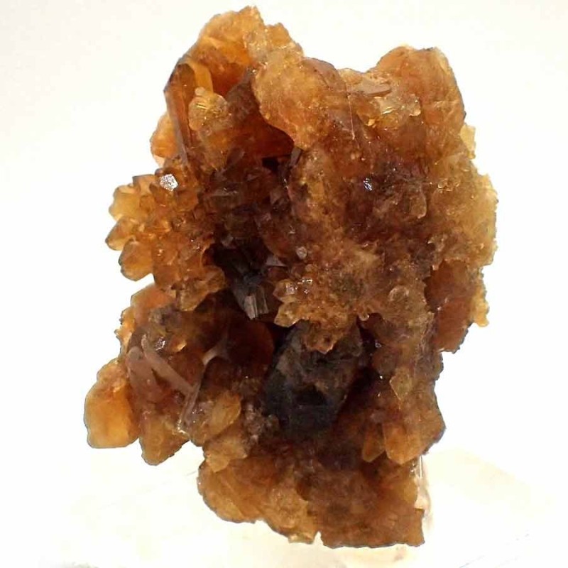 Citrine quartz piece, with a transparent, lustrous honey color. It measures ±5 x 4.5 cm and is mounted on a 4 x 4 x 2 cm methacrylate base.