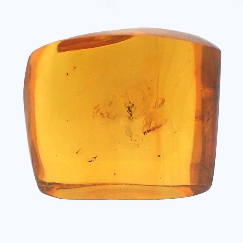 A piece of amber weighing approximately 4.6 grams, containing insect fossils, with a yellowish-red color. It measures approximately 2.4 x 2.1 x 1.4 cm.