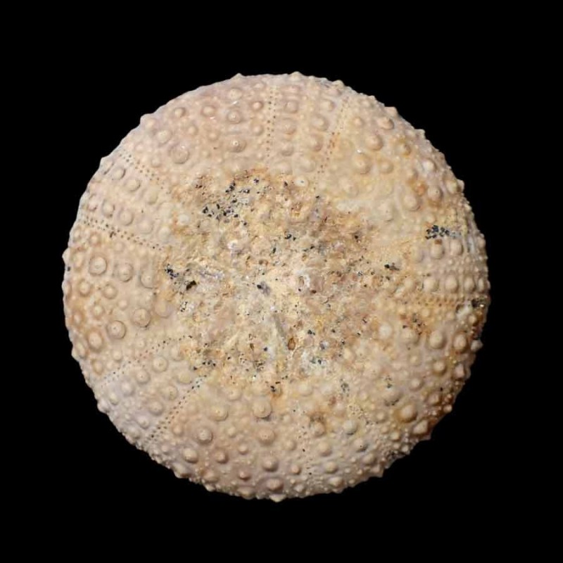 Fossil sea urchin, perfect on both sides, measuring ± 3 cm in diameter.