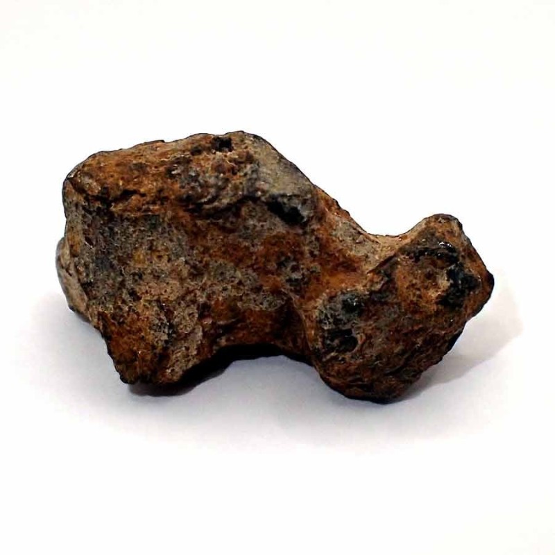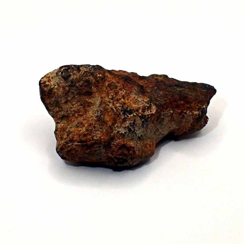 Meteorito completo con el exterior de la corteza de fusión marrón rojizo, carbonizada por la fricción de la atmósfera. Se entrega con caja y descripción.